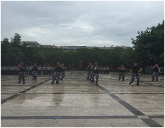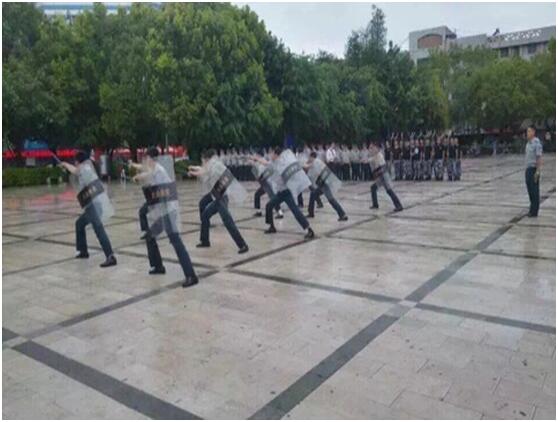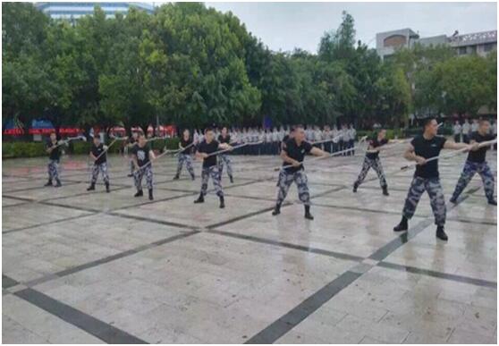 活動(dòng)首先由人防保安隊(duì)伍退伍老兵進(jìn)行了日常軍事訓(xùn)練中三大步伐的展示;隨后由文化娛樂(lè)場(chǎng)所保安員進(jìn)行了擒敵拳、鋼叉防護(hù)等的展示;最后由機(jī)動(dòng)大隊(duì)保安員進(jìn)行了警棍盾牌操的展示。