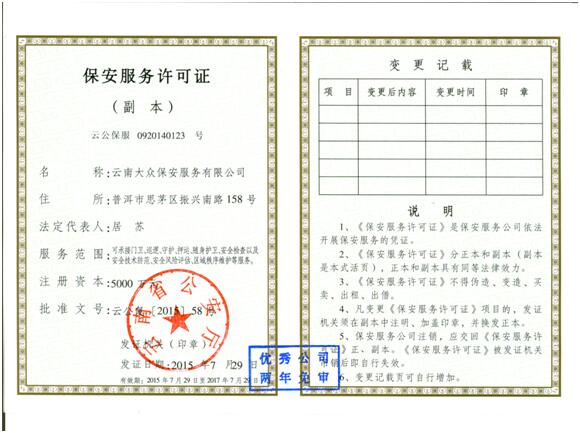 近日,云南大眾保安服務(wù)有限公司順利通過(guò)云南省公安廳組織的2014年度測(cè)評(píng),被評(píng)為優(yōu)秀企業(yè),2年內(nèi)免審。