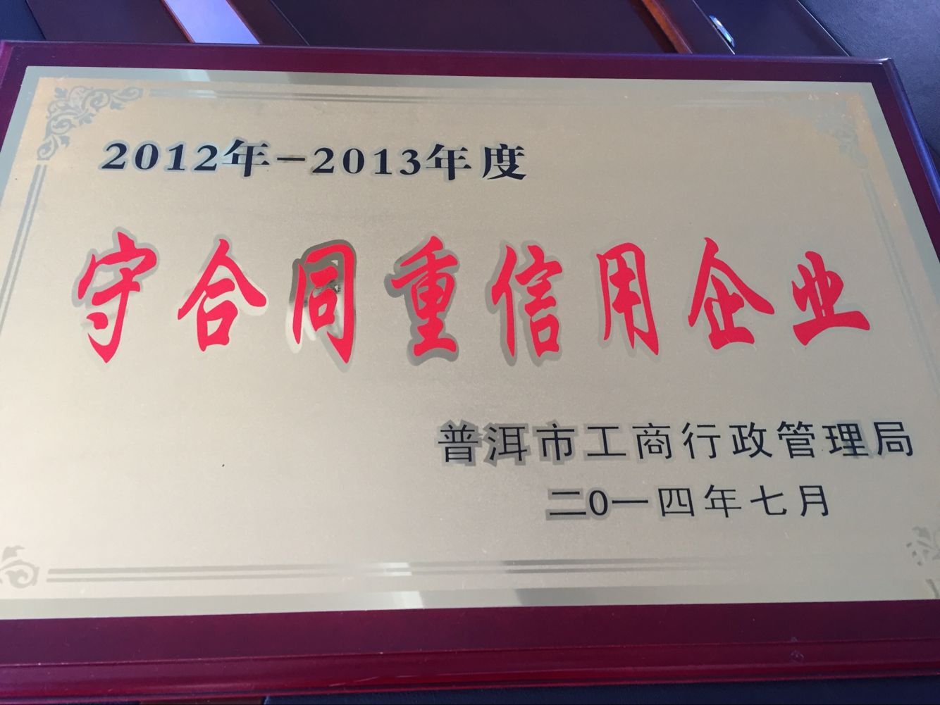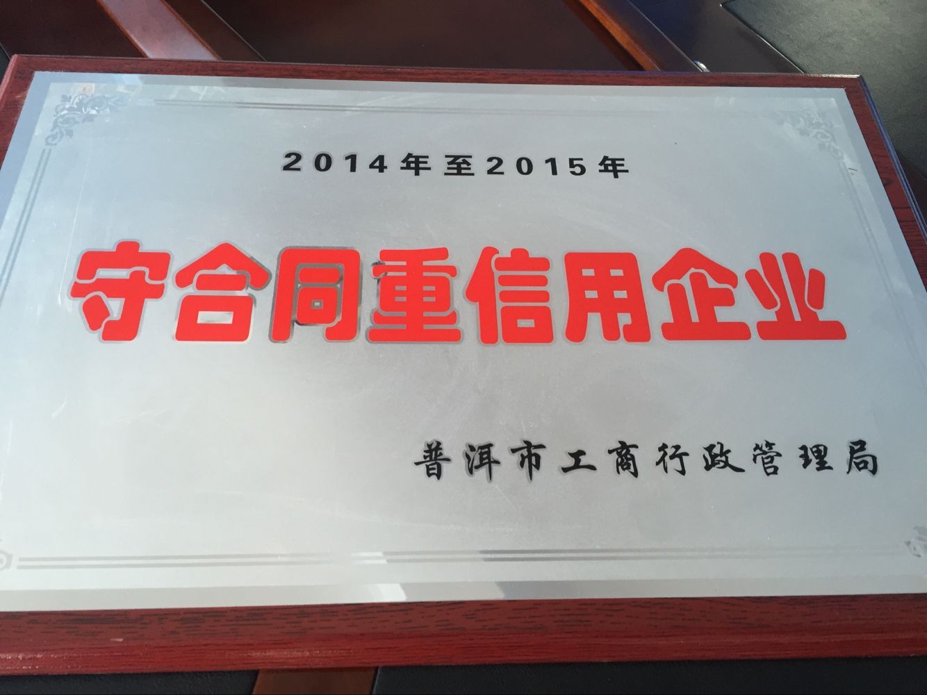 大眾安保公司榮獲2014-2015年度云南省 “守合同重信用”企業(yè)稱號