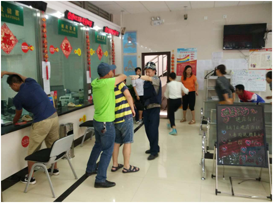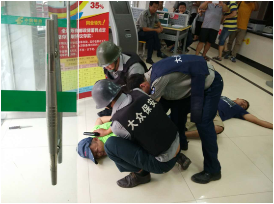 為增強(qiáng)網(wǎng)點(diǎn)保安員和銀行員工安全責(zé)任意識(shí),提高網(wǎng)點(diǎn)保安員和銀行員工應(yīng)對突發(fā)事件的能力,2016年811日下午1800時(shí),大眾保安公司寧洱分公司與寧洱縣郵政局在鳳新街營業(yè)網(wǎng)點(diǎn)聯(lián)合開展防搶、防爆、消防預(yù)案演練。